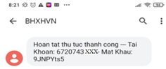 Sau khi đăng ký thành công BHXHVN gửi Tài khoản và mật khẩu