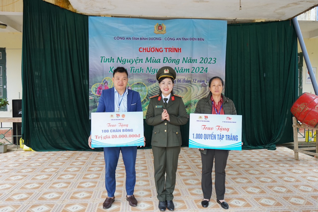 Trong chương trình, Ban Thanh niên Công an tỉnh đã trao tặng 100 phần quà, trong đó bao gồm 1.000 quyển tập trắng do Công ty TNHH Cung ứng Nhân lực Nhân Kiệt đóng góp cho các em học sinh có hoàn cảnh khó khăn tại điểm trường Tà Té, Phổ thông dân tộc bán trú Tiểu học Noong U, huyện Điện Biên Đông.