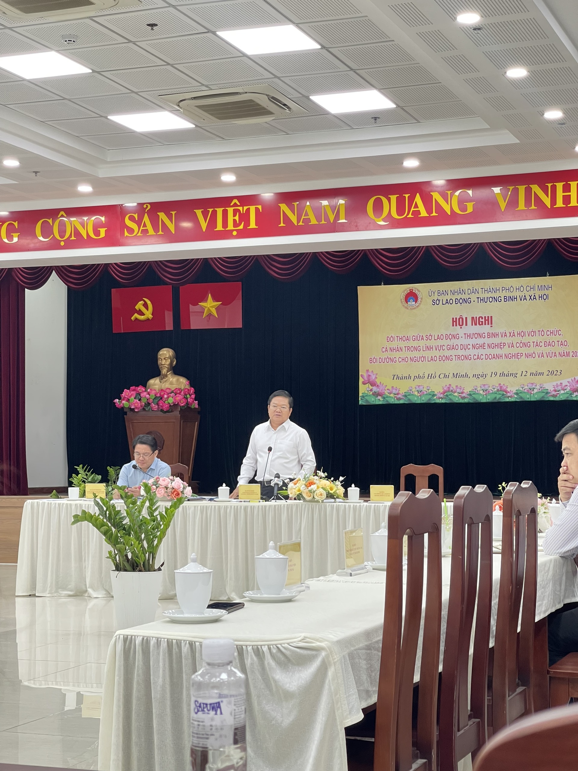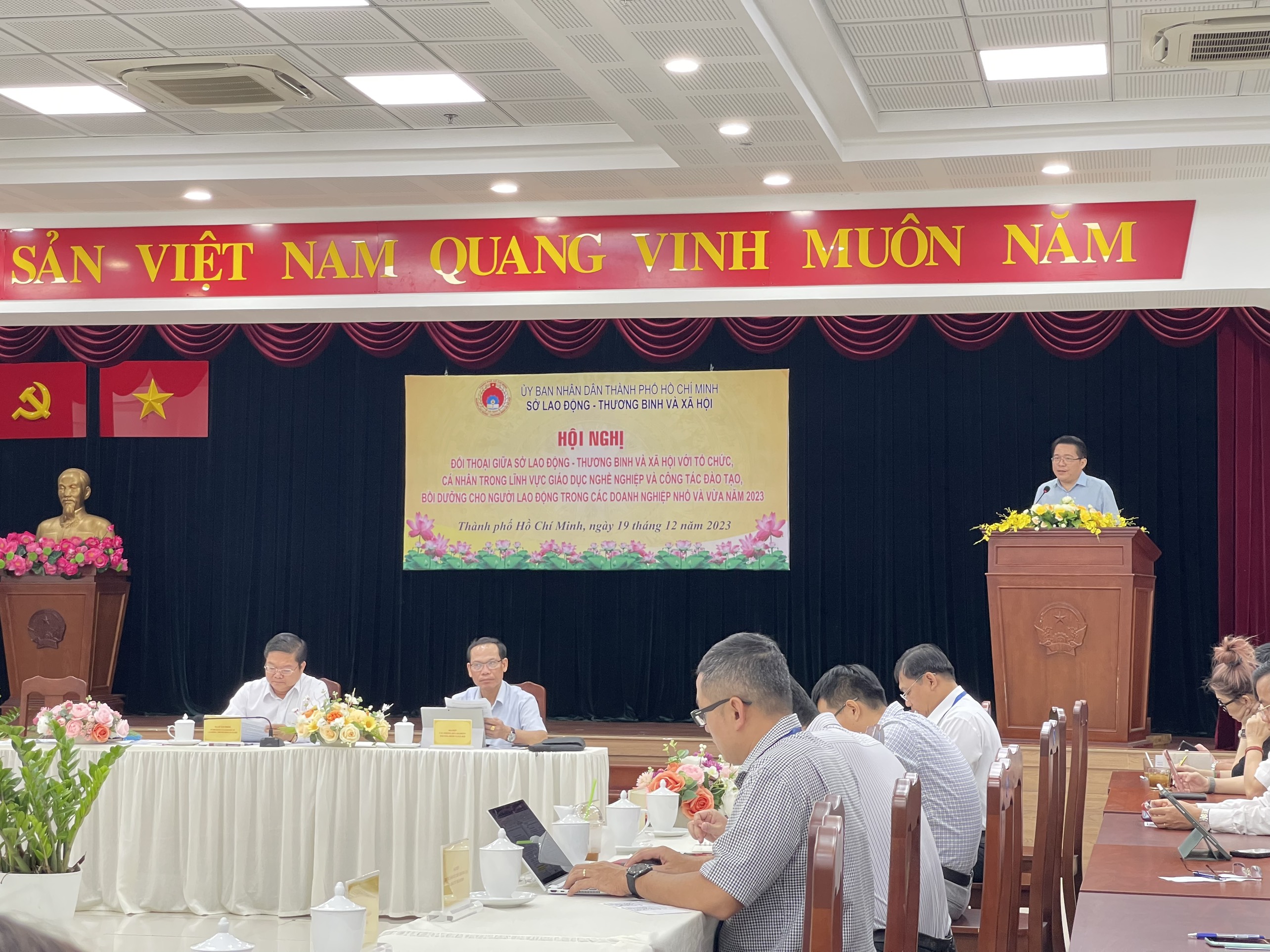 Ngày 19/12, Sở Lao động - Thương binh và Xã hội TPHCM tổ chức hội nghị đối thoại giữa lãnh đạo Sở với tổ chức, cá nhân trong lĩnh vực giáo dục nghề nghiệp (GDNN) và công tác đào tạo, bồi dưỡng cho người lao động trong các doanh nghiệp nhỏ và vừa năm 2023.
