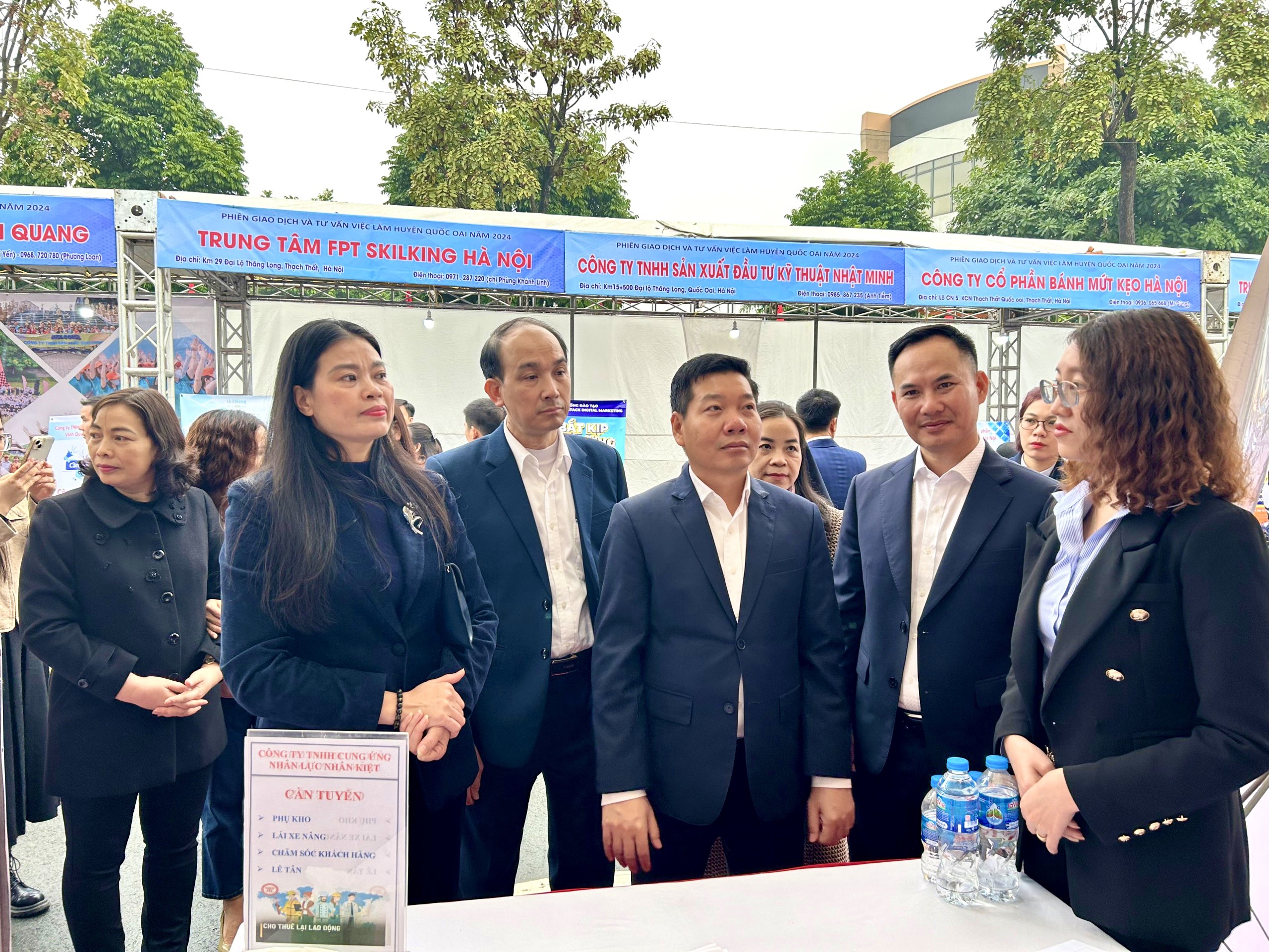 Một số đơn vị tham gia tuyển dụng trực tiếp tại phiên có thương hiệu và uy tín cao là Công ty TNHH Điện tử MEIKO Việt Nam, Công ty CP Viễn thông FPT, Công ty CP Bưu chính Viettel, Công ty CP Quản lý và khai thác tòa nhà VNPT... Phiên giao dịch việc làm cũng thu hút nhiều công ty đóng trên địa bàn huyện Quốc Oai đến tuyển dụng lao động tại địa phương. Các công ty tuyển dụng lao động đa dạng ngành nghề như quản lý nhà hàng, kế toán trưởng, quản lý kho, bán hàng – thu ngân, nhân viên kỹ thuật, nhân viên phát triển thị trường, nhân viên lễ tân.
