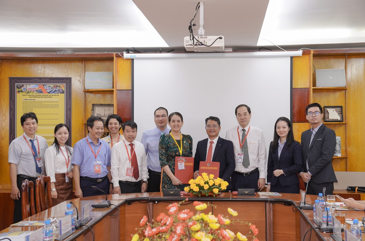 Tham dự buổi lễ ký kết về phía Trường đại học Bình Dương đại diện có: Tiến Sĩ Đỗ Đoan Trang - Phó Hiệu Trưởng Thường Thực; Về phía Công ty Nhân Kiệt đại diện tham dự ký kết có: Ông Đỗ Huy Lê - Tổng Giám Đốc.