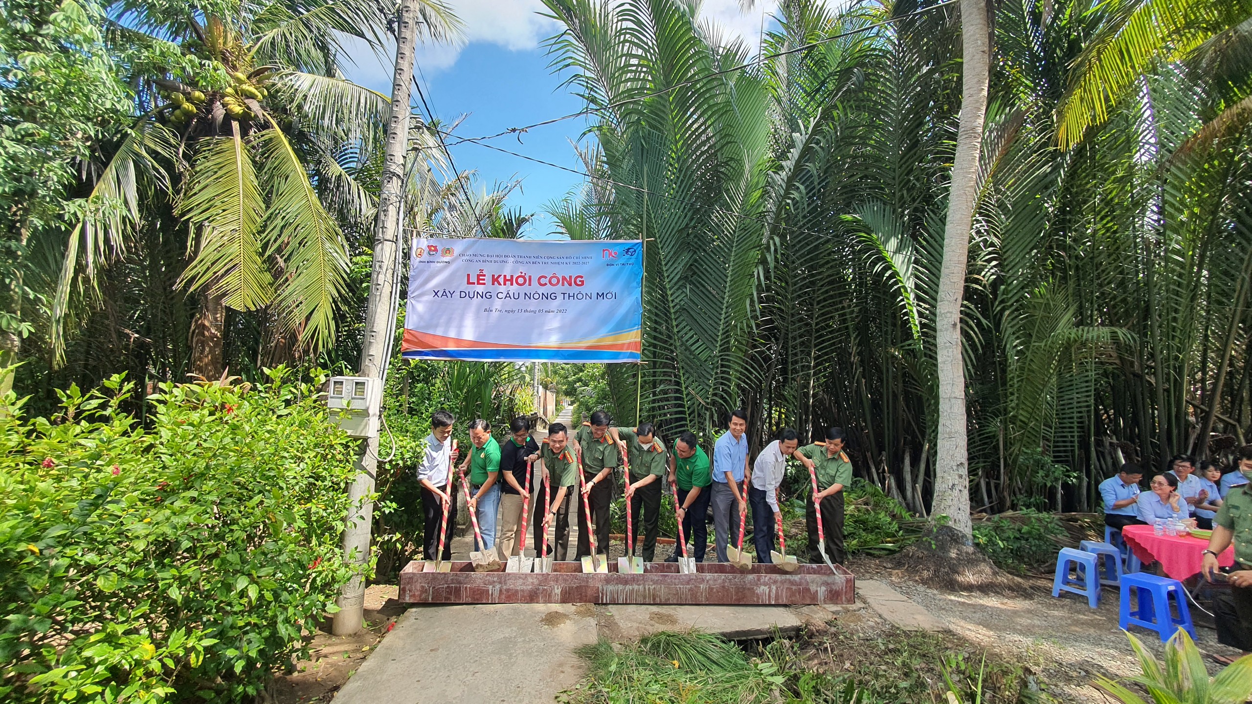 Lễ khởi công xây dựng cây cầu tại xã An Định, Mỏ Cày, Bến Tre – Chương trình phối hợp giữa Công ty Nhân Kiệt và Hội DNT Bình Dương, cùng một số đơn vị.
