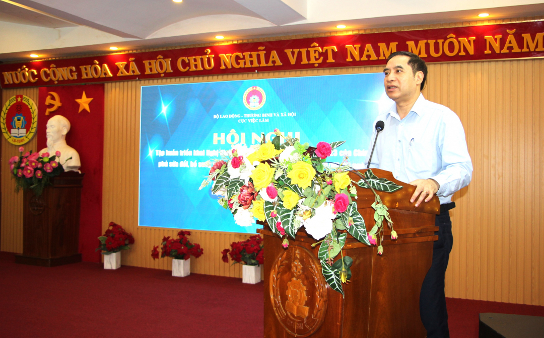 Ảnh: Ông Vũ Trọng Bình - Cục trưởng Cục Việc làm phát biểu tại Hội nghị