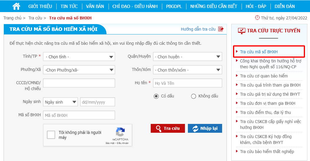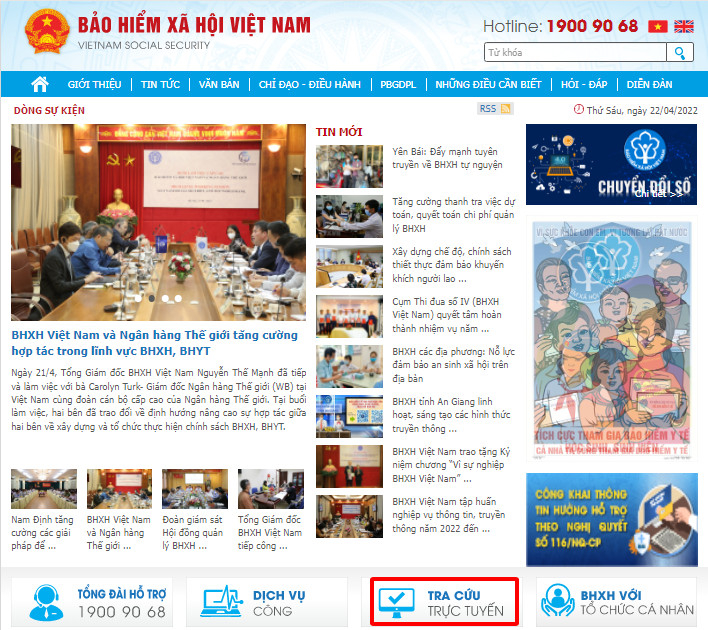 Cách 01: Tra cứu mã số BHXH trên Cổng thông tin điện tử BHXH Việt Nam