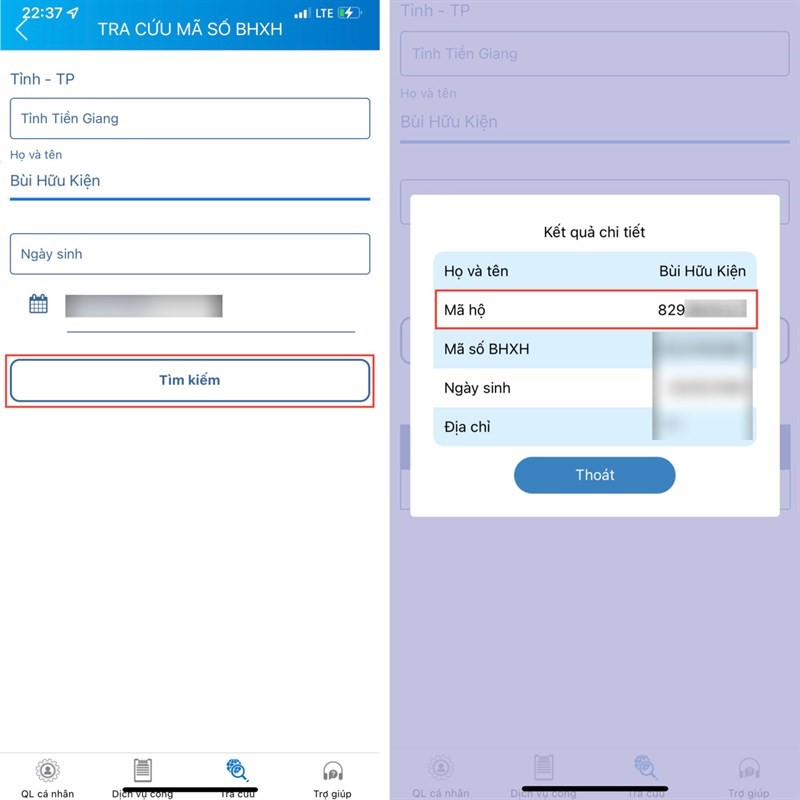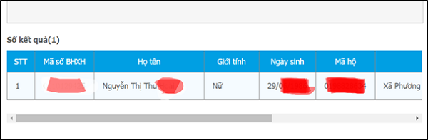 Màn hình xuất hiện kết quả tra cứu mã số BHXH sẽ có dạng như sau: