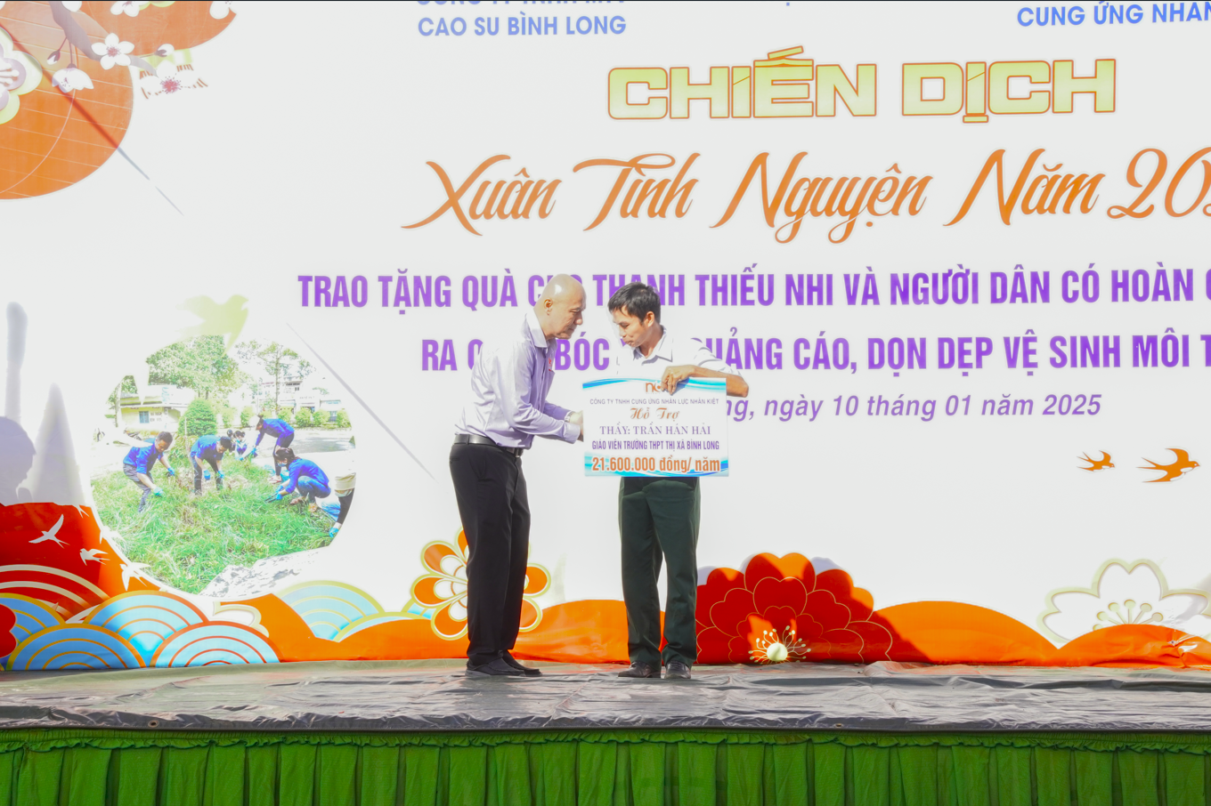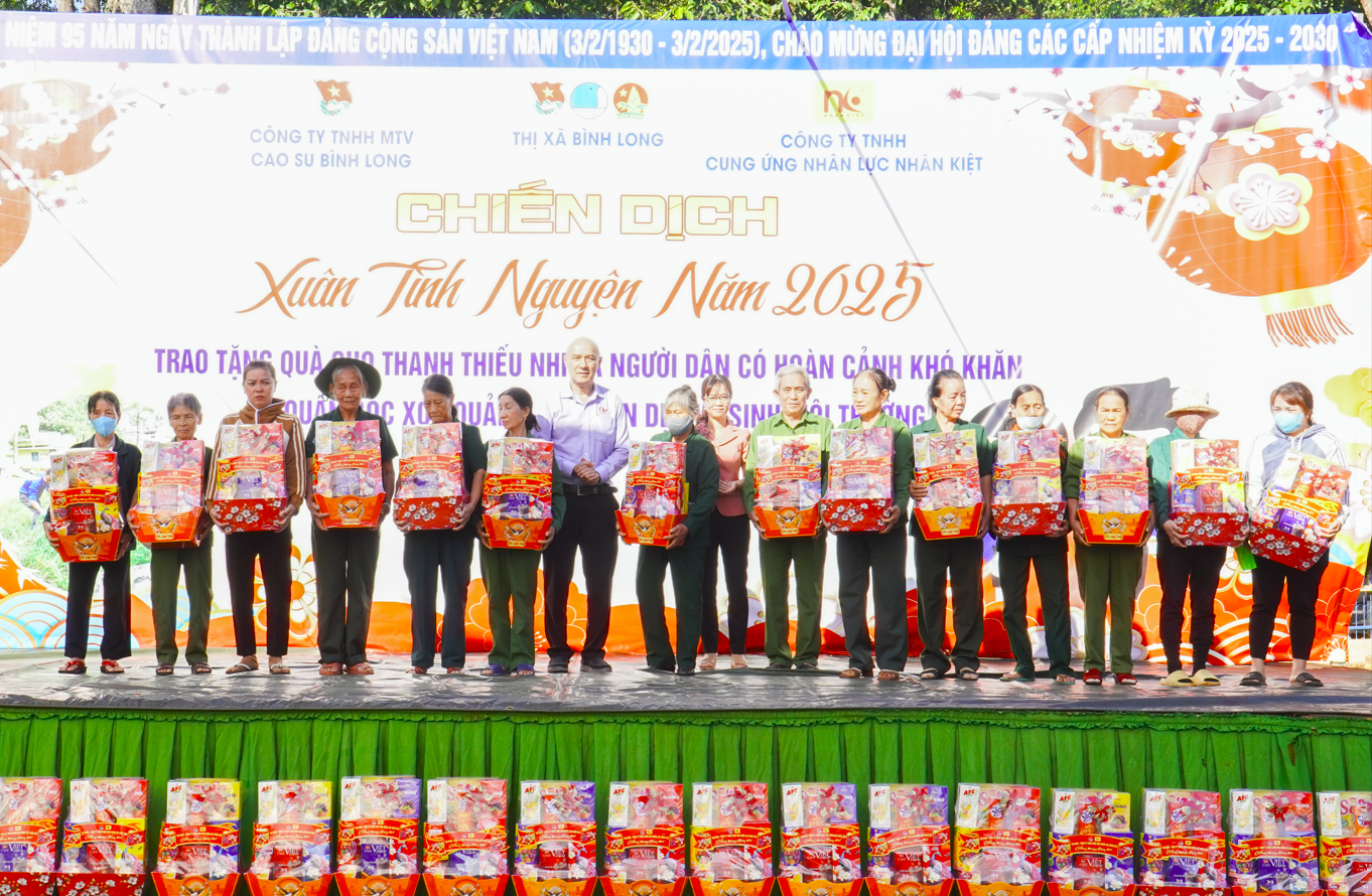 Ngày 10/01/2025, tại Công viên văn hóa thị xã Bình Long, Nhân Kiệt phối hợp cùng với Ban Thường vụ Thị Đoàn và Đoàn Thanh niên công ty TNHH MTV cao su Bình Long tổ chức chương trình chiến dịch “Xuân tình nguyện” năm 2025. Công ty TNHH Cung ứng Nhân lực Nhân Kiệt cùng một số đơn vị đã tài trợ và trao tặng 85 phần quà ý nghĩa cho thanh niên công nhân, đoàn viên, trẻ em, hội người nhiễm Chất độc da cam và các cựu thanh niên xung phong có hoàn cảnh khó khăn. Mỗi món quà tượng trưng cho tấm lòng, sự quan tâm, sẻ chia của công ty, mang lại niềm vui, động viên tinh thần cho những người cần được hỗ trợ trong dịp Tết.